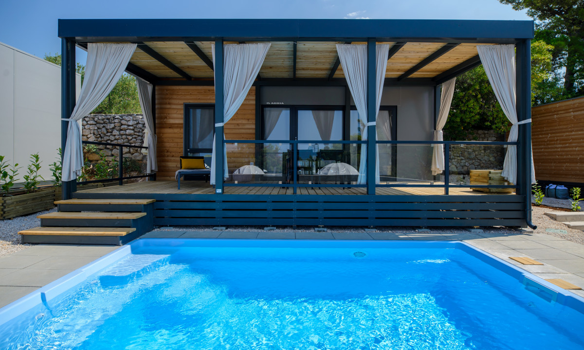 Het huren van een stacaravan in Kroatië, ook wel een mobile home genoemd biedt meer dan alleen de standaard uitrusting. Je krijgt er ook nog extra luxe voorzieningen bovenop, zoals moderne keukens met vaatwassers, 2 of zelfs 3 badkamers met douches, comfortabele slaapkamers met tweepersoonsbedden en 2 airconditioning units. En alsof dat nog niet genoeg is, zijn de grote overdekte terrassen met ligbedden en buitenzitjes perfect voor gezellige avonden met de hele familie.