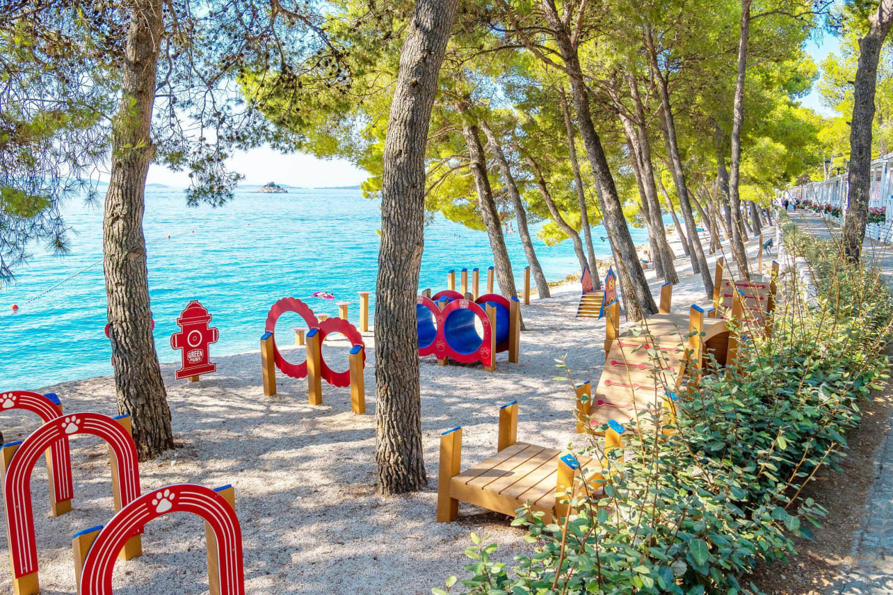 Camping Amadria Park ligt direct aan de zee met diverse plateaus en kiezelstranden, waar je heerlijk kunt genieten van zon, zee en strand. Op het strand staan gratis ligstoelen voor je klaar en de camping heeft ook een zoetwaterzwembad met uitzicht op zee. Zin in wat spanning en avontuur? Er staat een hele wereld van watersporten te wachten op jou slechts een kilometer afstand. Je kunt je adrenaline laten pompen op een jetski, of lachen met je vrienden terwijl je wordt voortgetrokken op een banaan of tubes.
