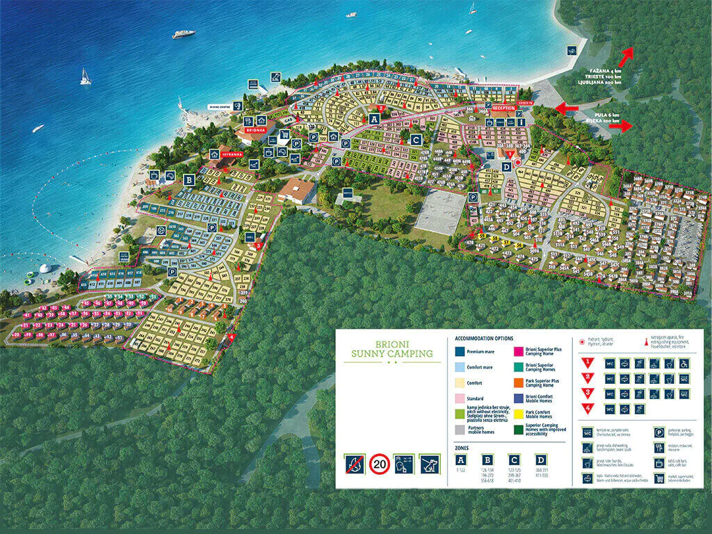 Als de zomer roept en je hunkert naar een unieke vakantie-ervaring, dan is Camping Brioni Sunny misschien wel de camping waar jij naar op zoek bent. Met de Brijuni Eilanden als je achtertuin en de historische stad Pula slechts een steenworp verderop. Het strand is zonder twijfel een van de hoogtepunten van Brioni Sunny. Of je nu de voorkeur geeft aan zonnebaden op een kiezelstrand, een duik neemt vanaf de rotsen of je mengt in een spannend potje strandvolleybal! En met diverse strandbars en eetgelegenheden hoef je het strand niet te verlaten voor een heerlijke cocktail of een smakelijke hap.