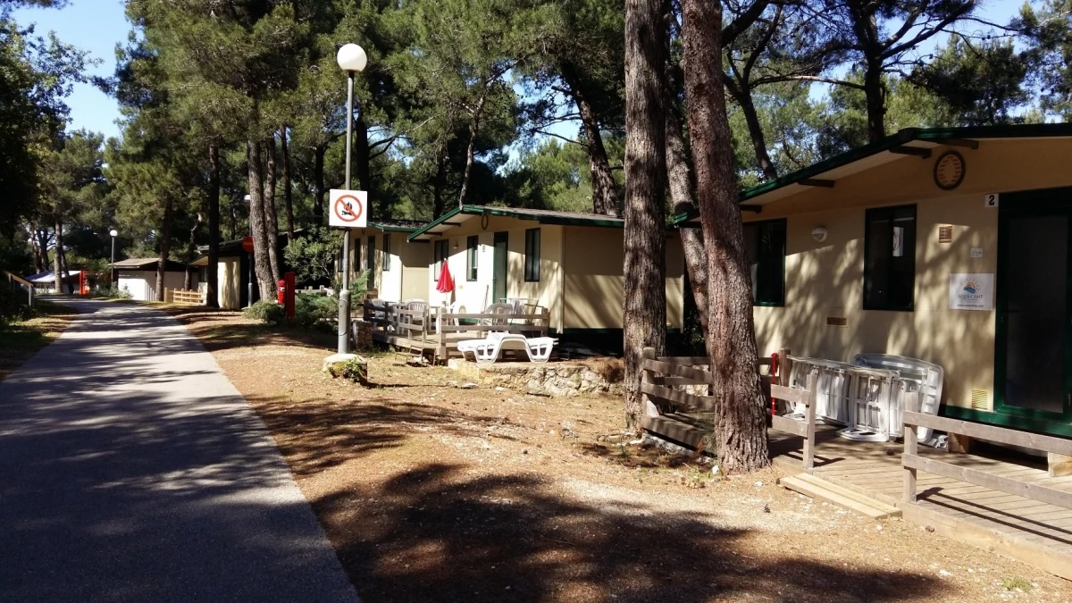 Camping Indije ligt op een groen schiereiland en is terrasvormig opgezet, met veel schaduw van pijnbomen. De plekken variëren in hoogte en zijn soms wat scheef, maar premiumplaatsen aan zee maken dat goed: ontbijten met uitzicht over het azuurblauwe water is een echte plus. Het strand is rotsachtig en voorzien van kleine kiezelbaaitjes, deels bereikbaar via trappen. Voor de dagelijkse voorzieningen zijn er twee restaurants, een bar en een kleine winkel, terwijl de animatie overdag activiteiten biedt voor kinderen en sport voor volwassenen.