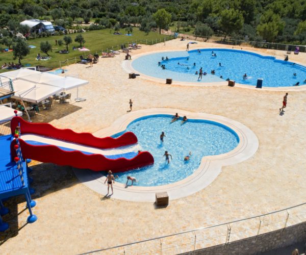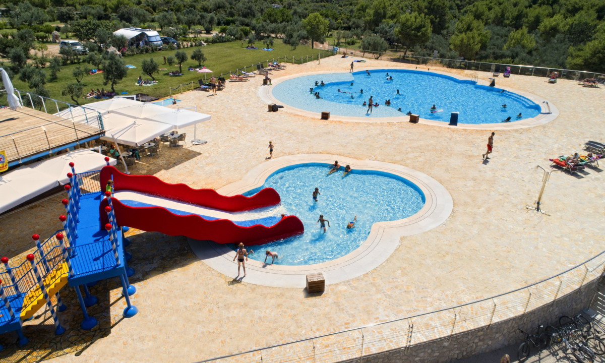 Het zwemaanbod op Camping Kovačine is uitgebreid. De doorgewinterde zwemmer kan duiken in het diepe zwembad, terwijl de kleintjes spetteren in het peuterbadje met glijbaan. Ontspanning vind je op het aangrenzende zonneterras, waar comfortabele ligstoelen en een poolbar wachten.