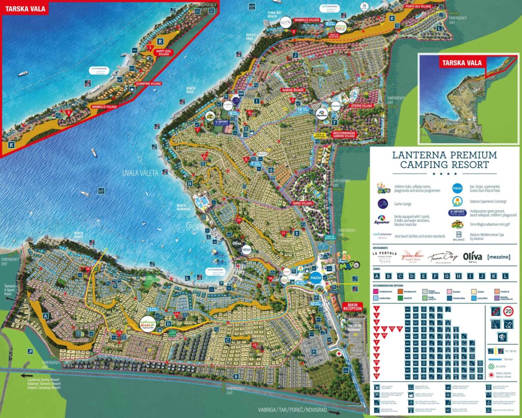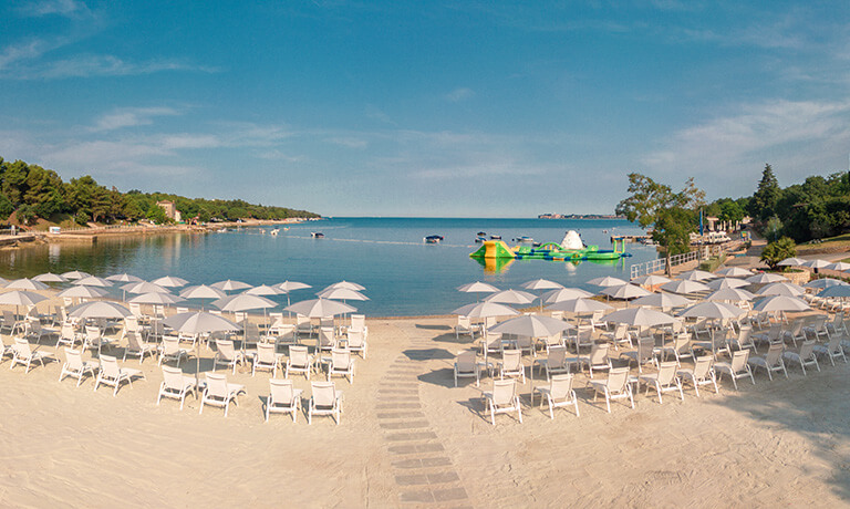De stranden in Tarska Vala in het meest oostelijke deel van de camping zijn een echte schat voor liefhebbers van natuur. Het is een rustige omgeving, met schilderachtige kiezelstranden en kristalhelder zeewater, waar ook huisdieren welkom zijn op een speciaal ingericht stuk strand. Tenslotte is er het Tuna Bay strand nabij het Marbello Premium Village, waar je kunt ontspannen op een kiezel- en rotsachtig strand, genieten van heerlijke gerechten in het nabijgelegen restaurant en de kinderen zich kunnen vermaken in het opblaasbare aquapark.