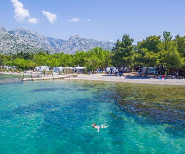 Op de camping vind je ruime kampeerplekken die apart liggen van de vaste staanplaatsen. De plaatsen zijn omringd door sfeervolle muurtjes en kleurrijke planten en bomen. Overigens heb je vanaf de camping een prachtig uitzicht op Nationaal Park Paklenica!