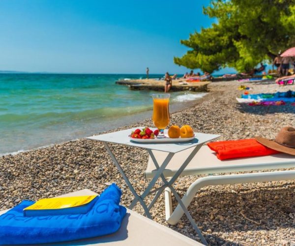 En als gast van Bluesun Camp mag je gratis gebruikmaken van de zwemfaciliteiten van het nabijgelegen Bluesun Hotel Alan. Hier vind je een groot buitenbad met comfortabele ligbedden en aparte zwembaden voor kinderen en peuters.