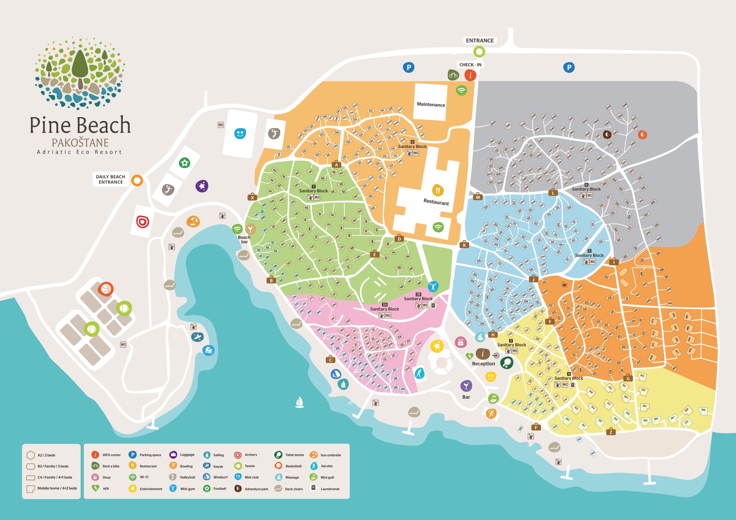 Camping Pine Beach Pakostane nodigt je uit voor een unieke vakantie-ervaring in Kroatië, waar je kunt genieten van de eenvoud van het leven dicht bij de natuur, gecombineerd met comfortabele accommodatie en een scala aan activiteiten die zijn inbegrepen in je verblijf. De stacaravans en bungalows bieden elk een andere ervaring: de stacaravans bieden een huiselijk comfort met moderne gemakken, terwijl de bungalows een meer traditionele en natuurlijke omgeving bieden.