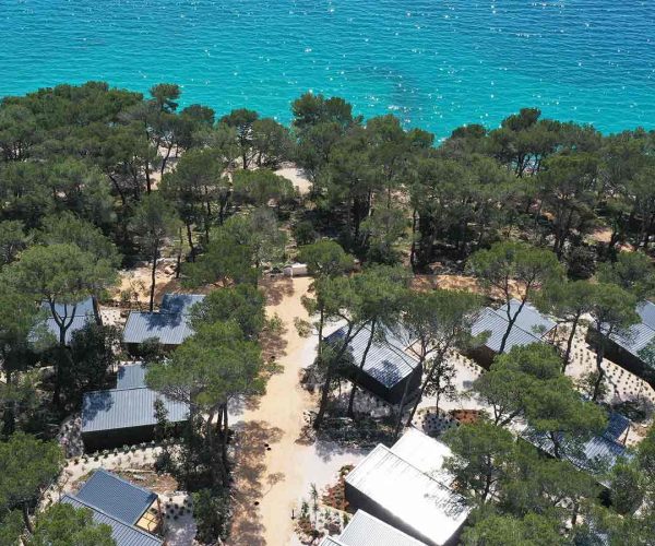 Daarentegen stralen de bungalows een ongecompliceerde charme uit, perfect voor degenen die naar een simpeler, rustiger soort vakantie verlangen. Ze zijn met liefde opgebouwd uit natuurlijke materialen zoals riet en hout, waardoor ze een rustieke uitstraling hebben die naadloos overvloeit in de schaduwrijke dennenbossen eromheen. De eenvoud van de bungalows, zonder de afleiding van elektronische apparaten, bevordert een gevoel van sereniteit en verbinding met de natuur. Voor je gemak zijn er verschillende gedeelde sanitaire voorzieningen beschikbaar, die zorgvuldig over het resort zijn verspreid.