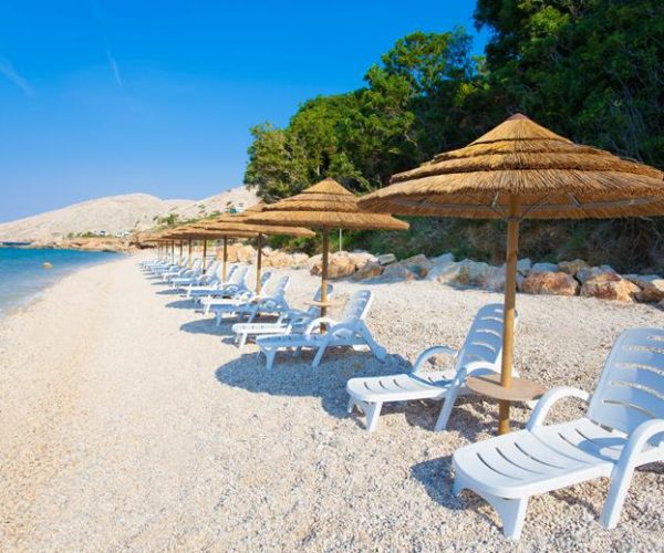 Terwijl de turquoise zee je blik gevangen houdt, strekken de 700 meter lange stranden zich voor je uit. Met een kiezelstrand, zandstrand, hondenstrand en naturistenstrand is er voor elk wat wils. En als ultieme verwennerij kun je genieten van een openluchtmassage, alsof je spieren zacht gekneed worden… dat is hoe een top vakantie in Kroatië hoort te zijn toch?
