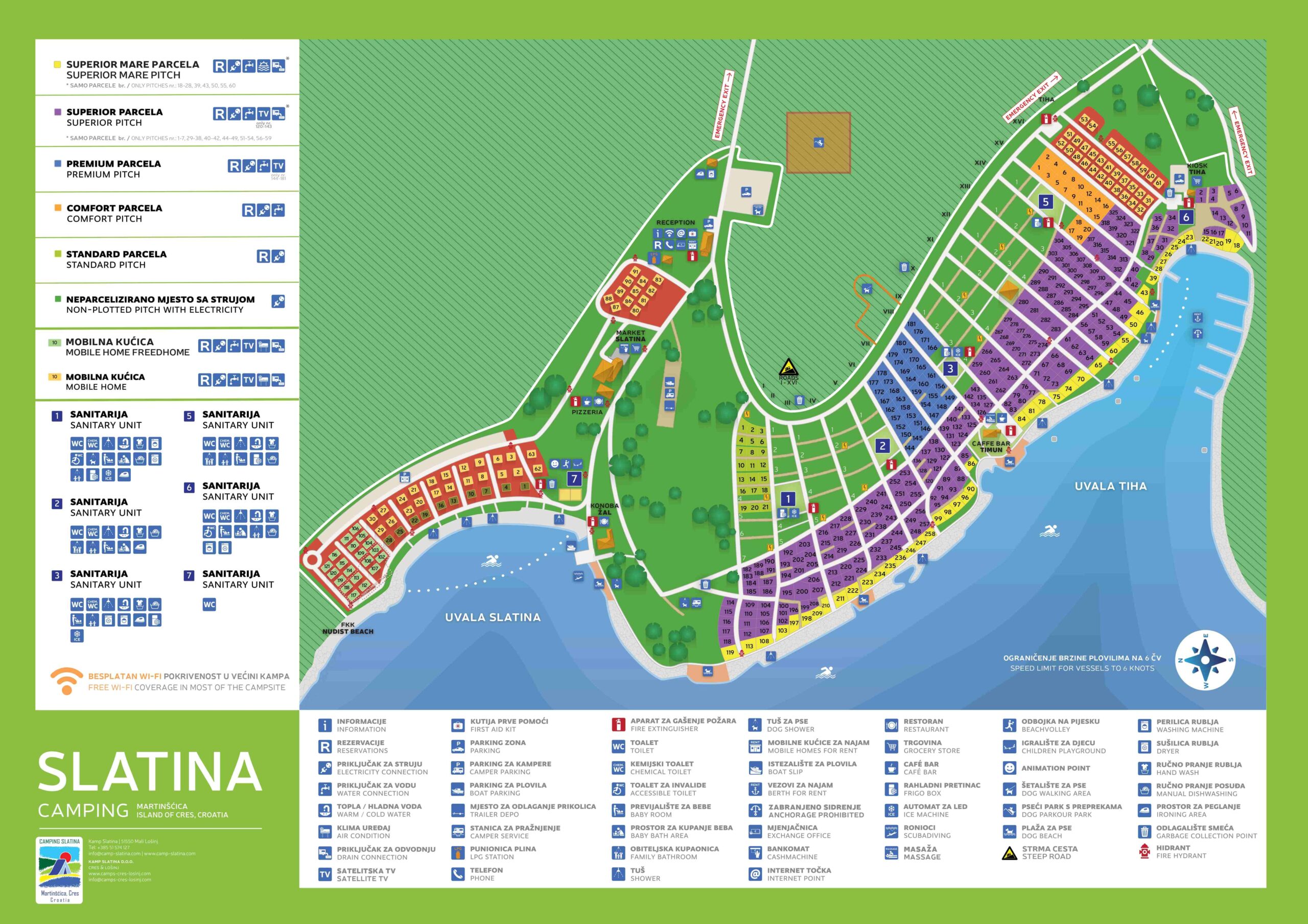 Er zijn ook creatieve workshops, bijvoorbeeld een waar je leert hoe je een wol-souvenir kunt maken, een mooi aandenken aan je verblijf. Sporters zullen op Camping Slatina zeker genieten van de regelmatige beachvolleybaltoernooien. Voor duikliefhebbers is er het “AgramSub” duikcentrum in de Slatina-baai, waar je duiklessen kunt nemen of, als je al een vergunning hebt, duikuitrusting kunt huren. Je kunt ook de prachtige nabijgelegen baaien verkennen door een bootje te huren bij het duikcentrum. En het echte hoogtepunt is de zipline bij het plaatsje Beli (waar je overigens ook heerlijke hamburgers kunt eten bij restaurantje op het strand). De Zip line Beli biedt je de kans om te vliegen boven de zee, 35 meter boven de zeespiegel, zwevend het strand, de haven en olijfgaarden zoef je met hoge snelheid naar beneden: cool!
