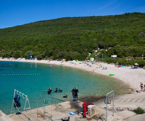 Voor degenen die het liever iets meer afgelegen zoeken, zijn er in de buurt van het Slatina-strand kleine, romantische strandjes voor naturisten. En als je verder kijkt dan de camping, zul je zien dat Cres en Lošinj een schat aan prachtige stranden hebben, elk met hun eigen unieke charme! Oh, en heb je een viervoetige vriend bij je? Camping Slatina heeft aan jullie gedacht. Met speciale hondenstranden, compleet met douches, kunnen jij en je hond samen genieten van de zon, het zand en de zee.