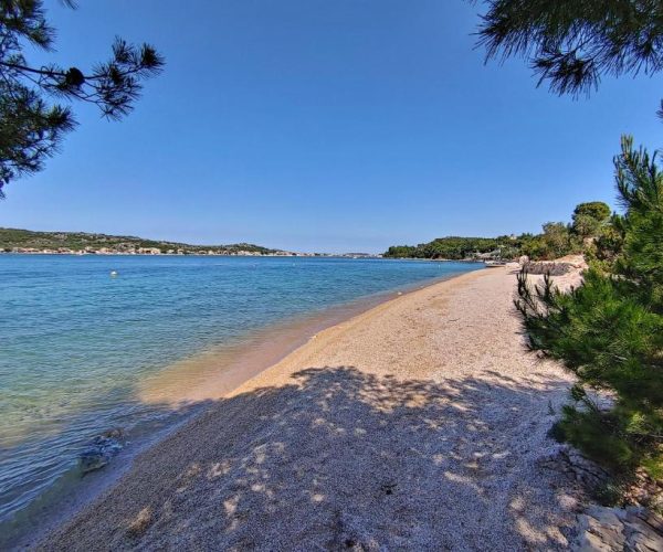 De zee en strand van camping jezera lovisca in murter