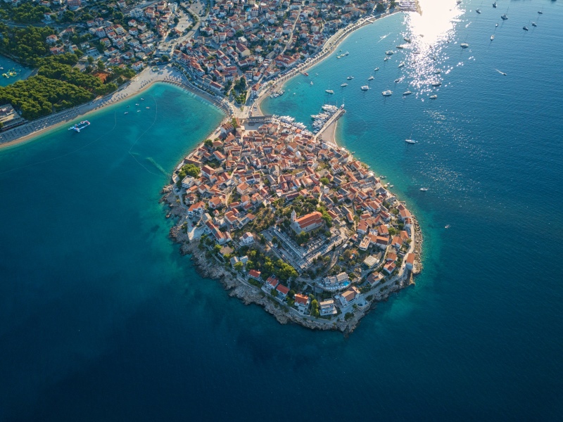 Primosten zou je alleen al een keer moeten bezoeken vanwege het pittoreske stadscentrum. Het oude stadscentrum bestaat uit smalle, geplaveide straatjes en historische gebouwen. Je kunt rondwandelen en de middeleeuwse stadsmuren en kerkjes bewonderen. Het meest opvallende gebouw is de Sint-Jacobuskerk, die bovenop een heuvel staat en uitkijkt over de stad.