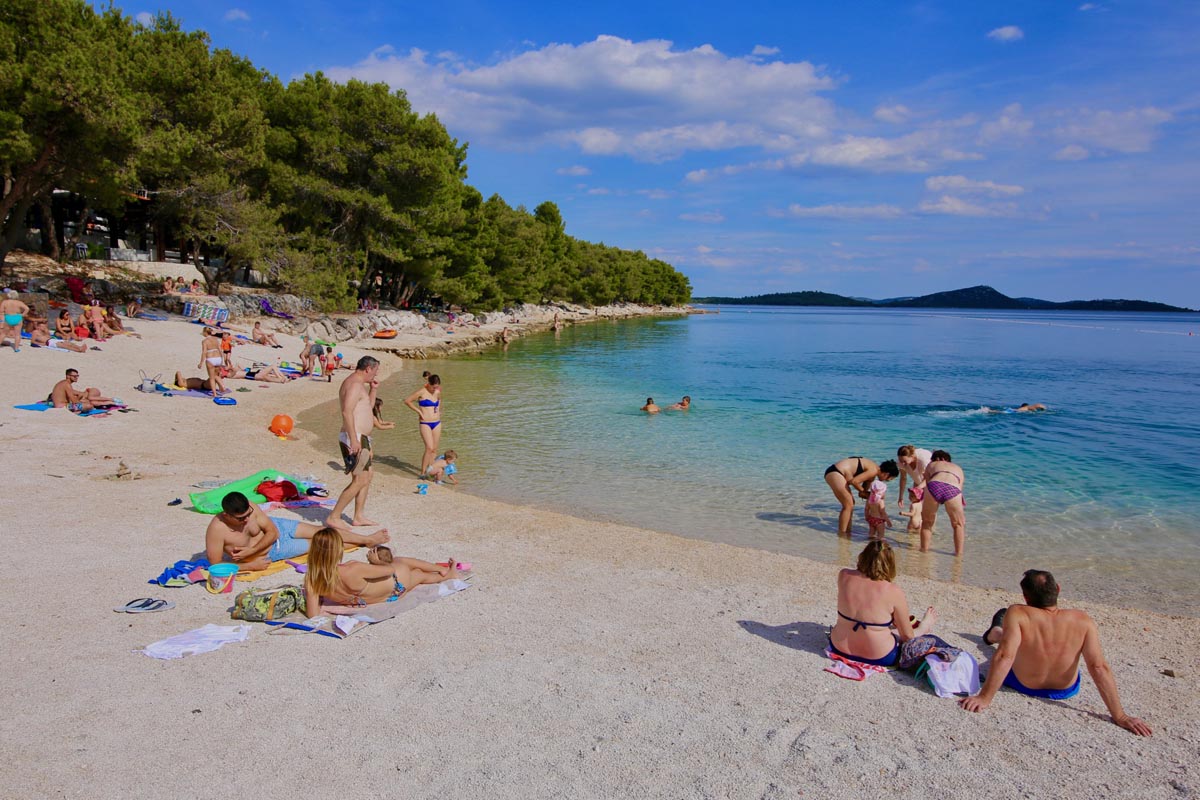Het Pine Beach zou je kunnen beschouwen als een van de aantrekkelijkere stranden in Pakoštane, waarom? Omdat het een zandstrand is en er veel te doen is! Pine Beach is gelegen in een rustige baai, waar het water ondiep en beschermd tegen golven. Deze kenmerken maken het een fijne plek voor ontspanning, helemaal als je met (jonge) kids op vakantie gaat. Dit strand maakt onderdeel uit van Camping Pine Beach Pakoštane, het bijzondere van deze camping is dat je er verblijft op basis van all inclusive. Iets wat je bijna nergens ziet op campings in Kroatië!