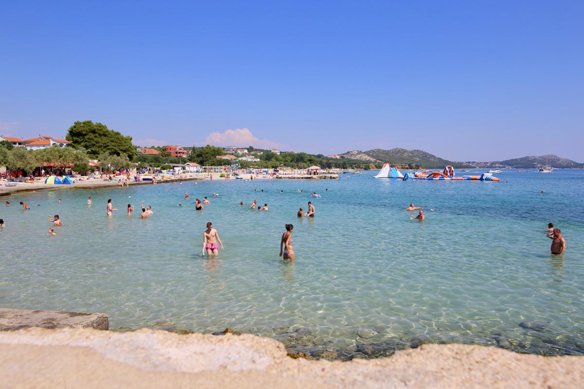 Porat beach is een pareltje verborgen in het zuiden van Pakoštane, dicht bij het dorpje Drage. Het zeewater is er zo helder blauw, dat wij bijna niet konden wachten om het water in te duiken en te snorkelen! Als je trek krijgt, zijn er genoeg tentjes in de buurt die je graag wat lekkers serveren. Het strand zelf loopt heel geleidelijk de zee in, wat het ook ideaal maakt voor kinderen.