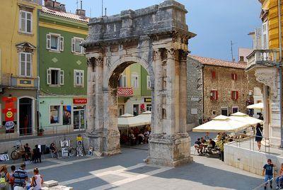 Deze boog staat midden in dé winkelstraat van Pula en is zeker een foto waard. De boog wordt omringd door verschillende terrasjes die een mooi uitzicht hebben op dit imposante monument.
