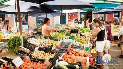 “De lokale markt in Rovinj vindt dagelijks plaats, van maandag tot en met zondag, tot ongeveer 12.00 uur. Sommige marktkramen zijn langer open, vooral in het hoogseizoen.”