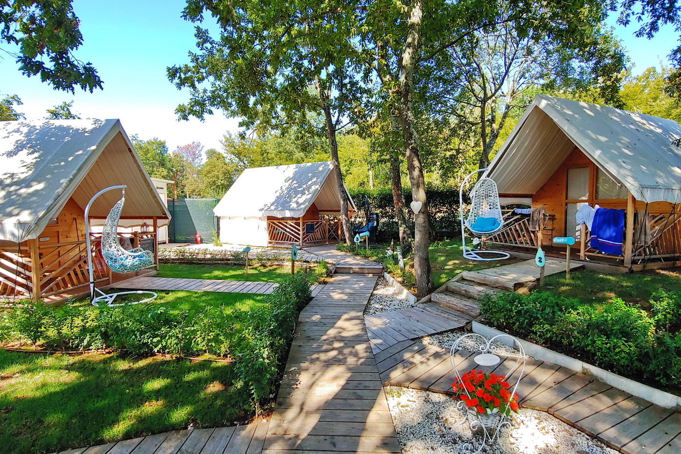 Er zijn verschillende accommodaties beschikbaar op de camping, variërend van eenvoudige tenten tot meer luxe glampingtenten. Daarnaast kun je ook luxe stacaravans boeken, inclusief privéjacuzzi of zelfs een zwembad. Benieuwd naar de mogelijkheden en prijzen van deze zeer gewaardeerde camping? Vergelijk dan eens de beschikbaarheid en de prijzen van de onderstaande reisaanbieders!