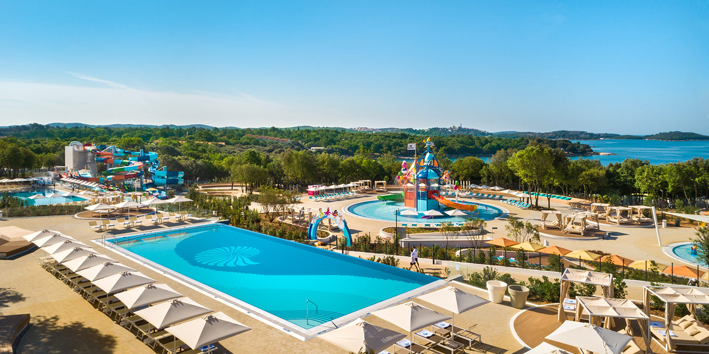 Vanaf 2020 beleef jij op Camping Park Umag nog meer spetterplezier want er is een nieuw zwembadcomplex! Deze is maar liefst 1700 m² en is een van de grootste in Istrië: deze zwemparadijs omvat een zwembad voor activiteiten, een kindergedeelte met een waterspeeltuin en glijbanen en een overdekt peuterbad met speeltoestellen.